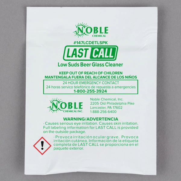 Noble Chemical 0.5 Oz. Last Call Low Suds Powdered Bar Glass Cleaner Packet – 100/Case