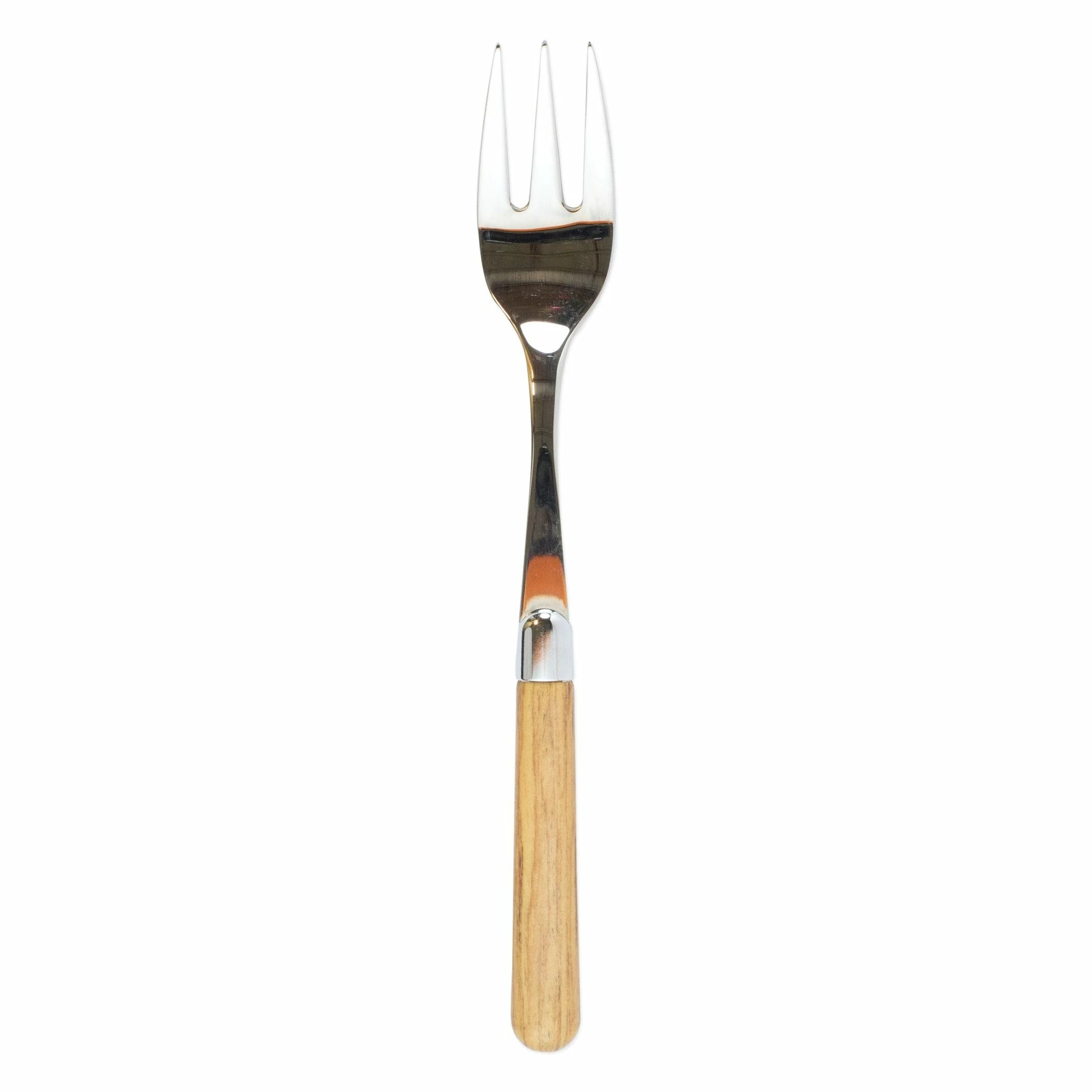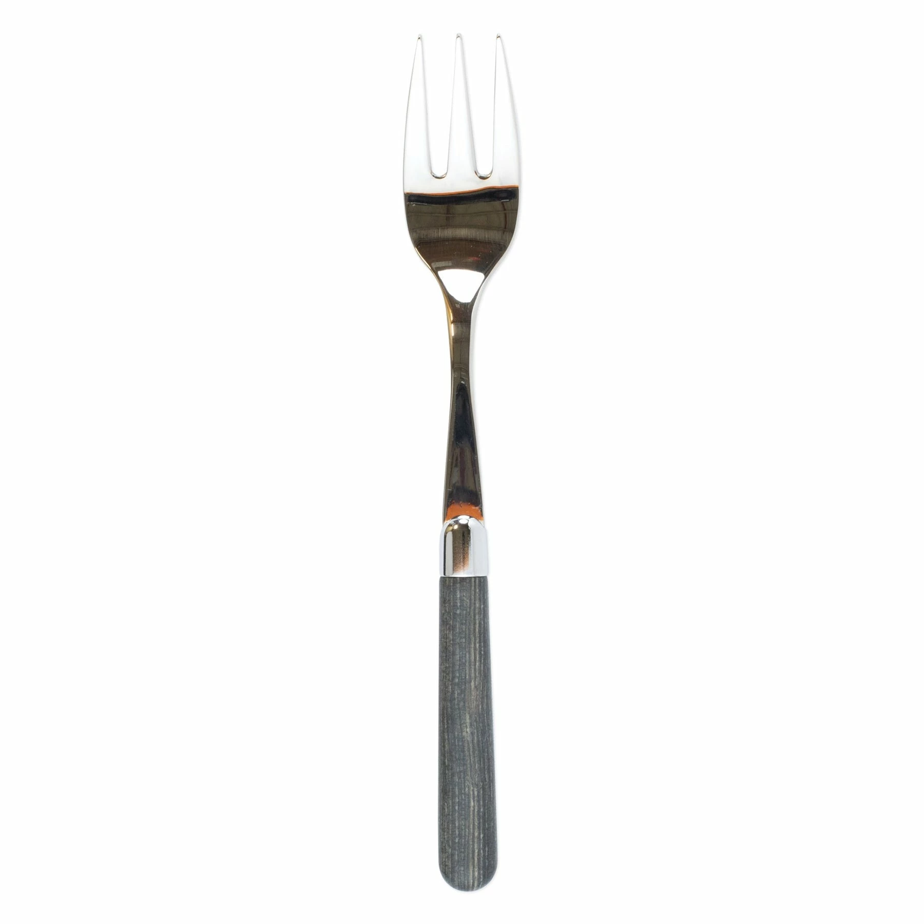 The Albero Serving Fork in muted black features warm wood handles, with the strength of high-grade polyester and 18/10 stainless steel.
