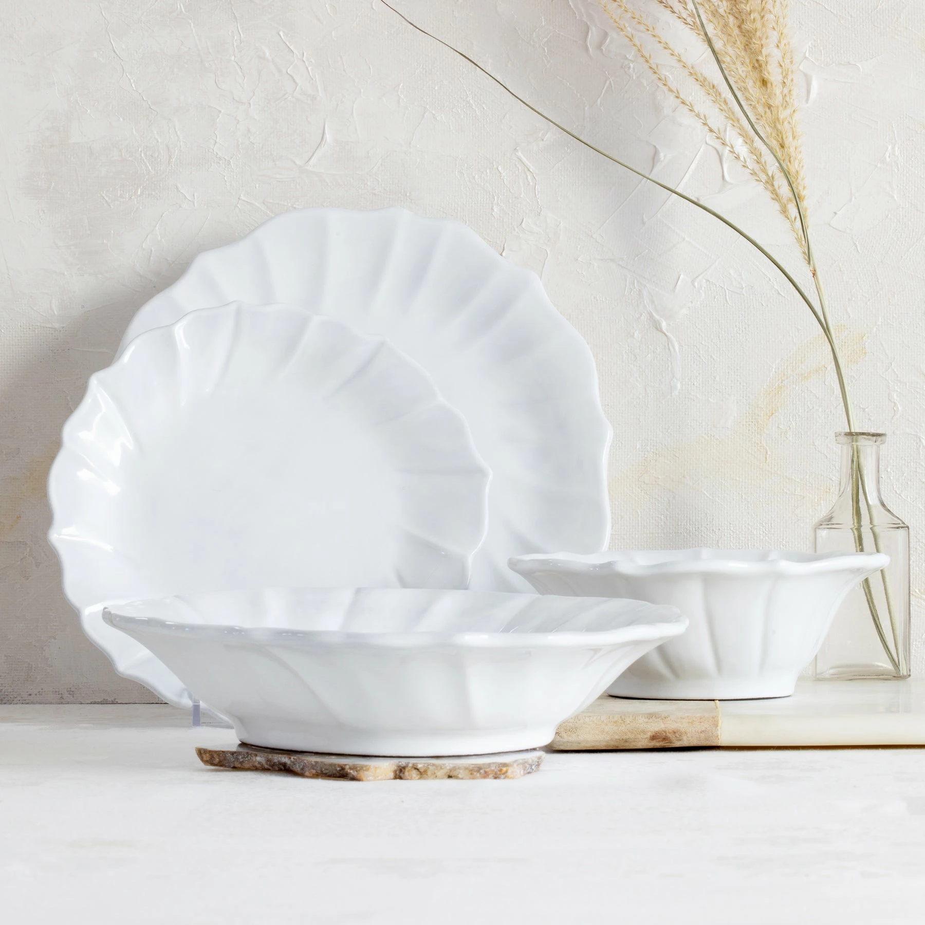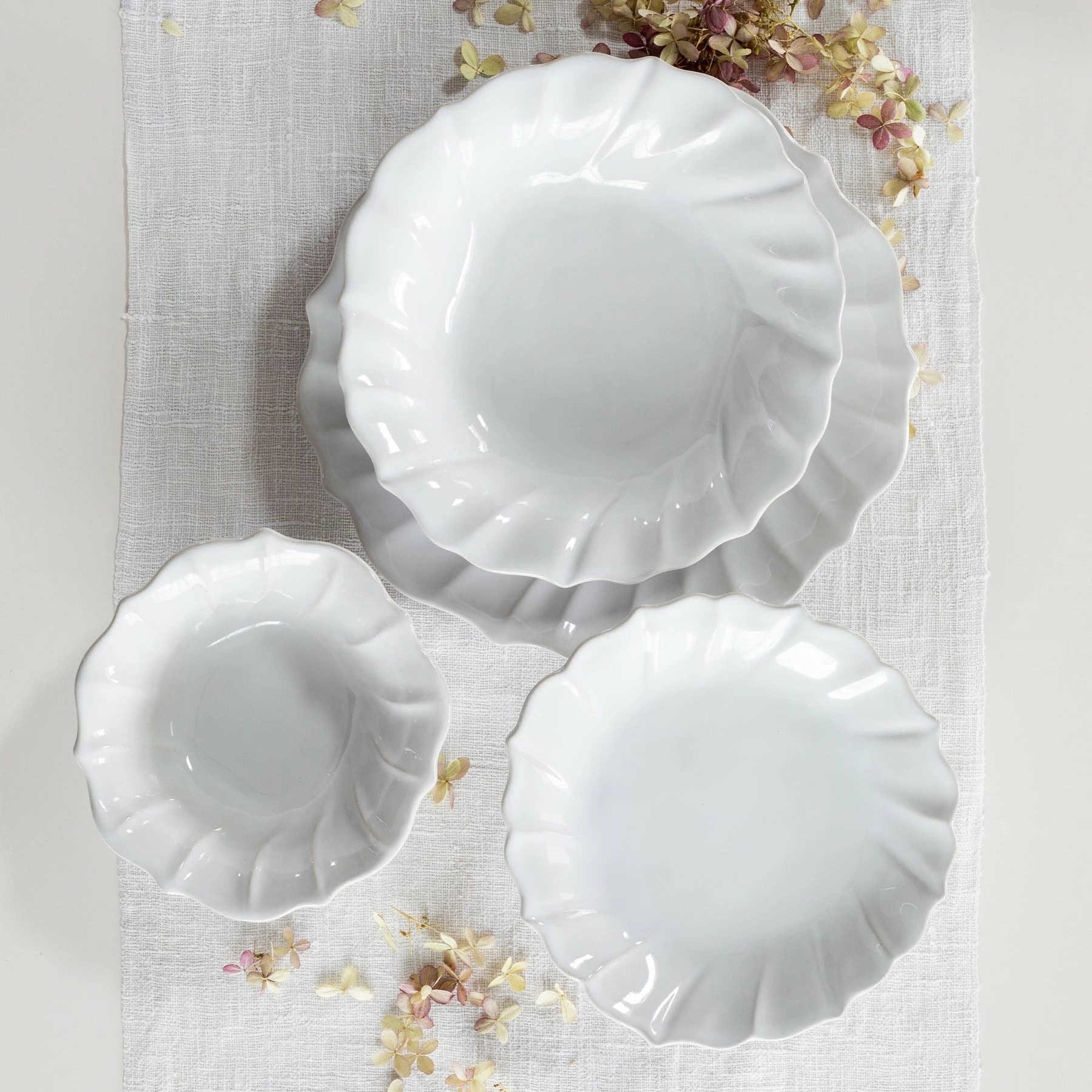 Italian for enchantment, Incanto is inspired by Italy’s art, landscape, and Venetian history. The designs on the Incanto Stone Ruffle Four-Piece Place Setting pay homage to the ripples of the Adriatic Sea. The Place Setting includes a European dinner plate, salad plate, pasta bowl, and cereal bowl. Set a table full of Incanto Ruffle settings or mix and match them with other designs from the collection.