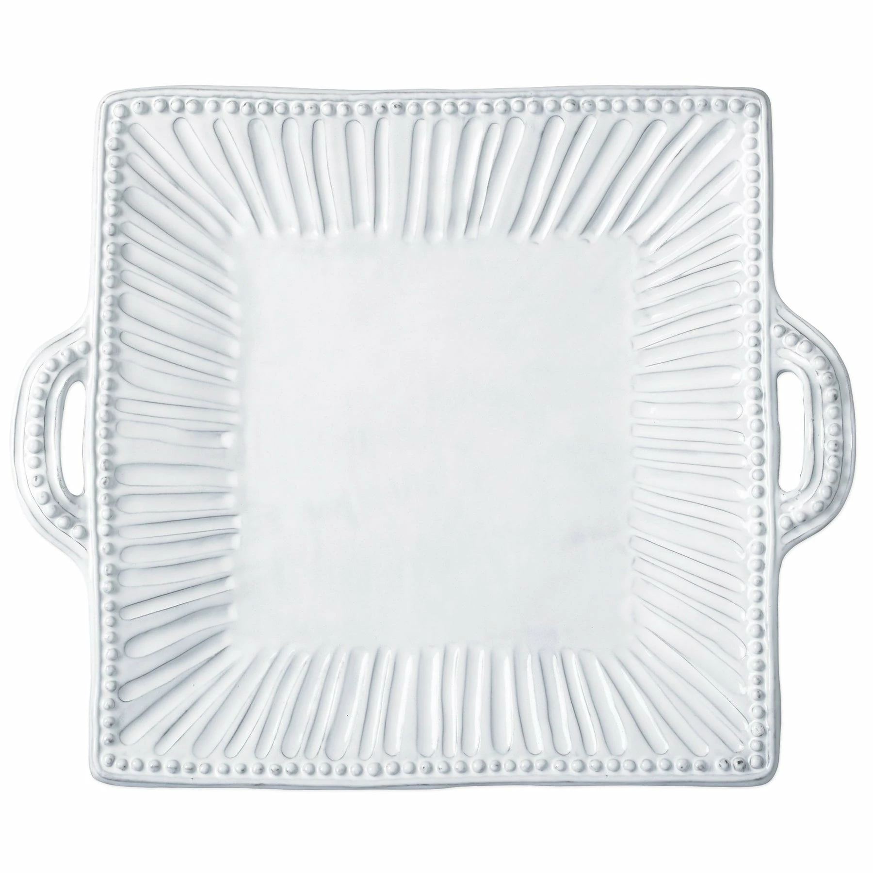 Italian for enchantment, Incanto is inspired by Italian art, the landscape, and Venetian history. The handcarved stripes on the Incanto Stripe Handled Square Platter honor the columns of the Palladian villas along the Brenta River. This serving piece is a crowd-favorite, and it brings irresistible Italian style to everything you serve.