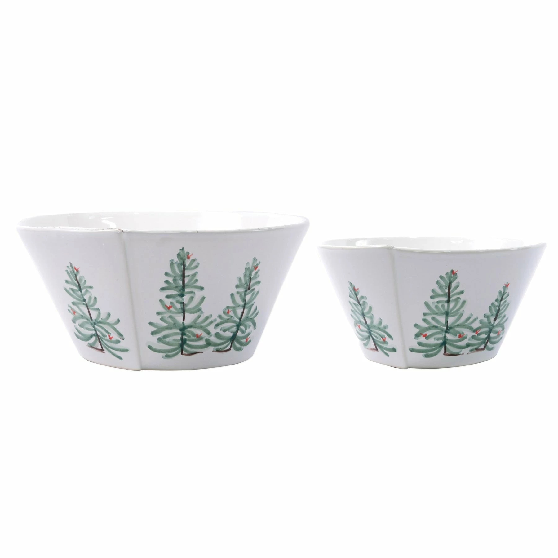 Make time for your loved ones when you gather around the cheerful design of the Lastra Holiday 2-Piece Serving Bowls Set. Featuring handpainted fir trees, the Medium Stacking Serving Bowl and Large Stacking Serving Bowl make it easy to delight in the magic of the holiday season.