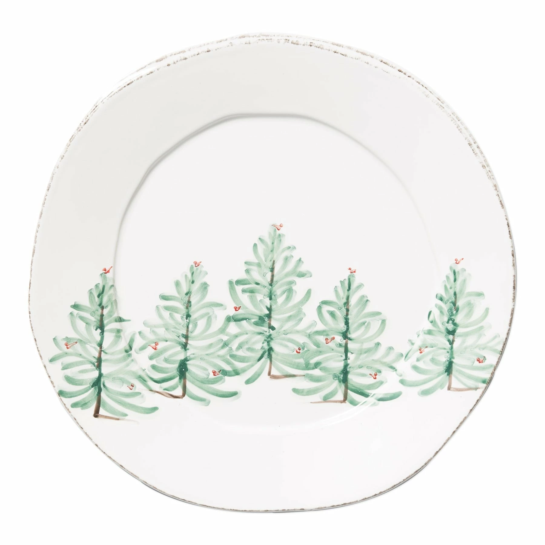 Delight in the magic of the holiday season with the Lastra Holiday Round Serving Platter. Whether you are hosting a winter brunch or a Christmas dinner, this ceramic plate is the perfect complement to your holiday décor. Handpainted on Italian stoneware in Tuscany.