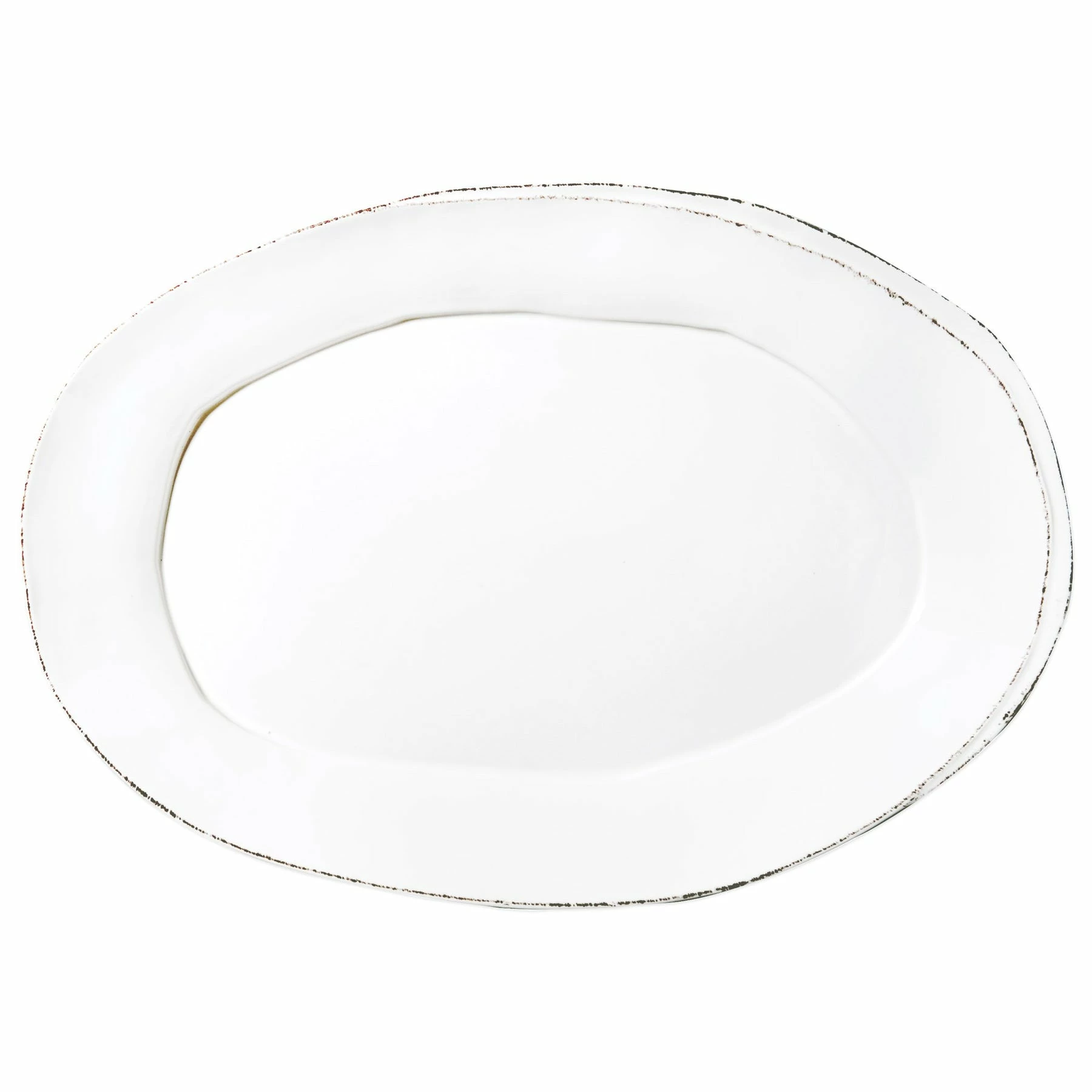 Beloved for its sophisticated simplicity, versatility, and durability, Lastra is our bestselling collection. The understated elegance, clean lines, and unique shape of the Lastra Oval Platter make a timeless and elegant serving piece for any table. Lastra’s design was inspired by the circular wooden slabs used for centuries to create the outer mold in cheesemaking throughout Italy. When fashioned together with twine, the hoop was left with a slight overlap to help maintain the shape of the cheese mold. Maestro molder Stefano Roselli incorporates the overlapping detail into the entire design, from its foot to its rim. A dark dusting on the edges of each piece suggests the ash that was used to preserve these cheeses and highlights each unique silhouette.