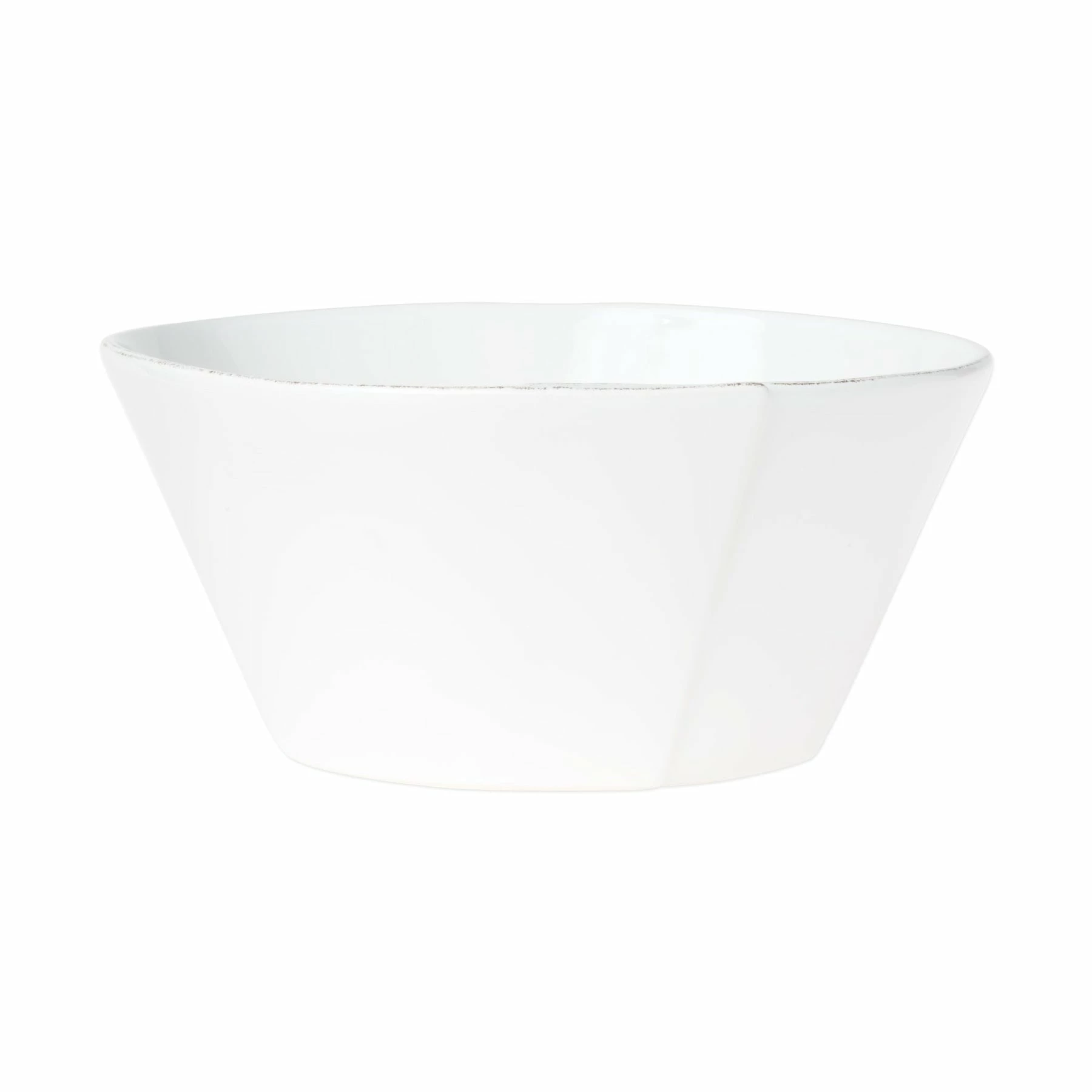 Beloved for its sophisticated simplicity, versatility, and durability, Lastra is our bestselling collection. The understated elegance, clean lines, and unique shape of the Lastra White Large Stacking Serving Bowl make it a timeless choice for your table. Lastra’s design was inspired by the circular wooden slabs used for centuries to create the outer mold in cheesemaking throughout Italy. When fashioned together with twine, the hoop was left with a slight overlap to help maintain the shape of the cheese mold. Maestro molder Stefano Roselli incorporates the overlapping detail into the entire design, from its foot to its rim. A dark dusting on the edges of each piece suggests the ash that was used to preserve these cheeses and highlights each unique silhouette.
