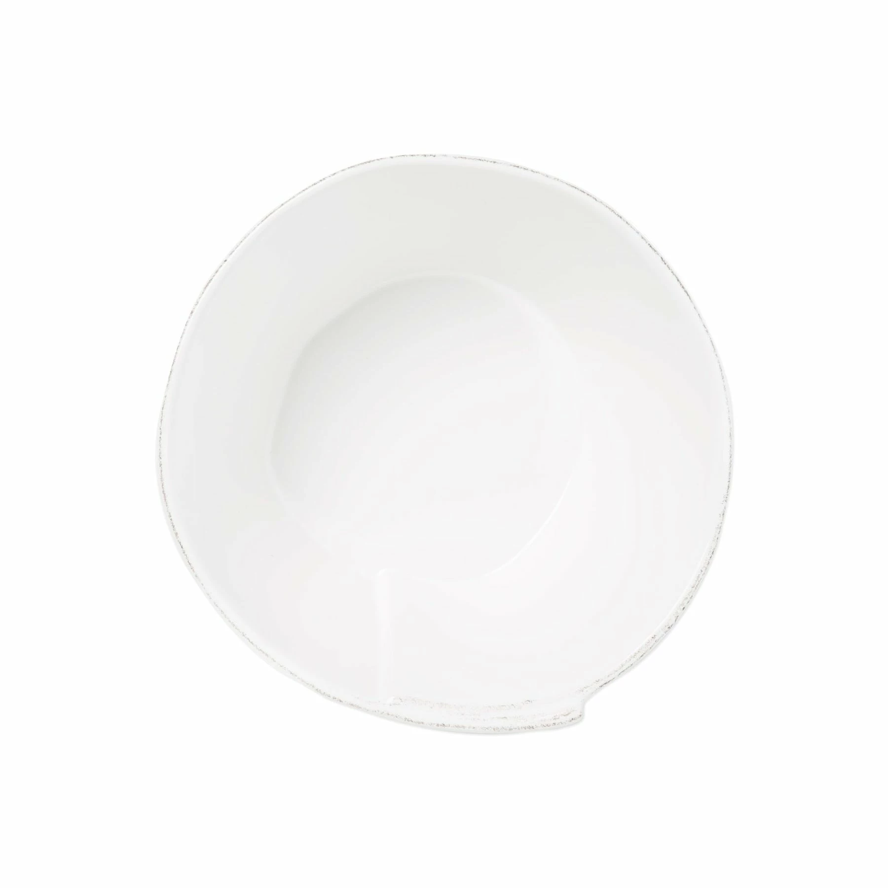 Beloved for its sophisticated simplicity, versatility, and durability, Lastra is our bestselling collection. The understated elegance, clean lines, and unique shape of the Lastra White Medium Stacking Serving Bowl make it a timeless choice for your table. Lastra’s design was inspired by the circular wooden slabs used for centuries to create the outer mold in cheesemaking throughout Italy. When fashioned together with twine, the hoop was left with a slight overlap to help maintain the shape of the cheese mold. Maestro molder Stefano Roselli incorporates the overlapping detail into the entire design, from its foot to its rim. A dark dusting on the edges of each piece suggests the ash that was used to preserve these cheeses and highlights each unique silhouette.