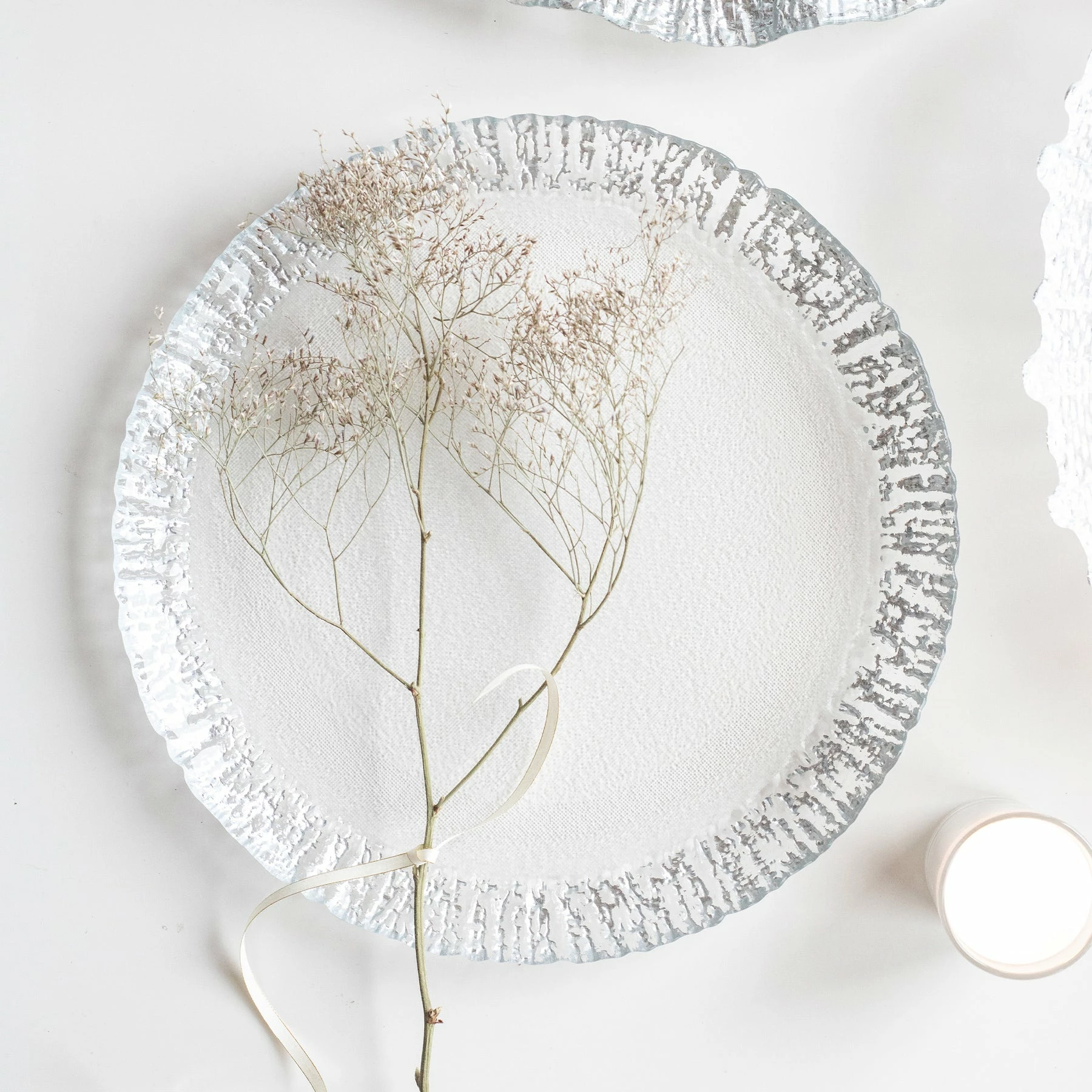With glowing strands and beautiful texture, the Rufolo Glass Dinner Plate brings luster, glamour, and irresistibly Italian style to your table.