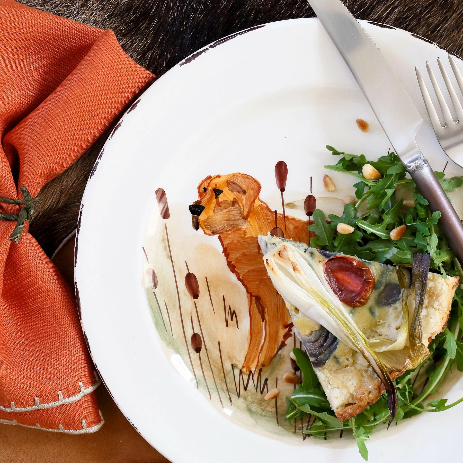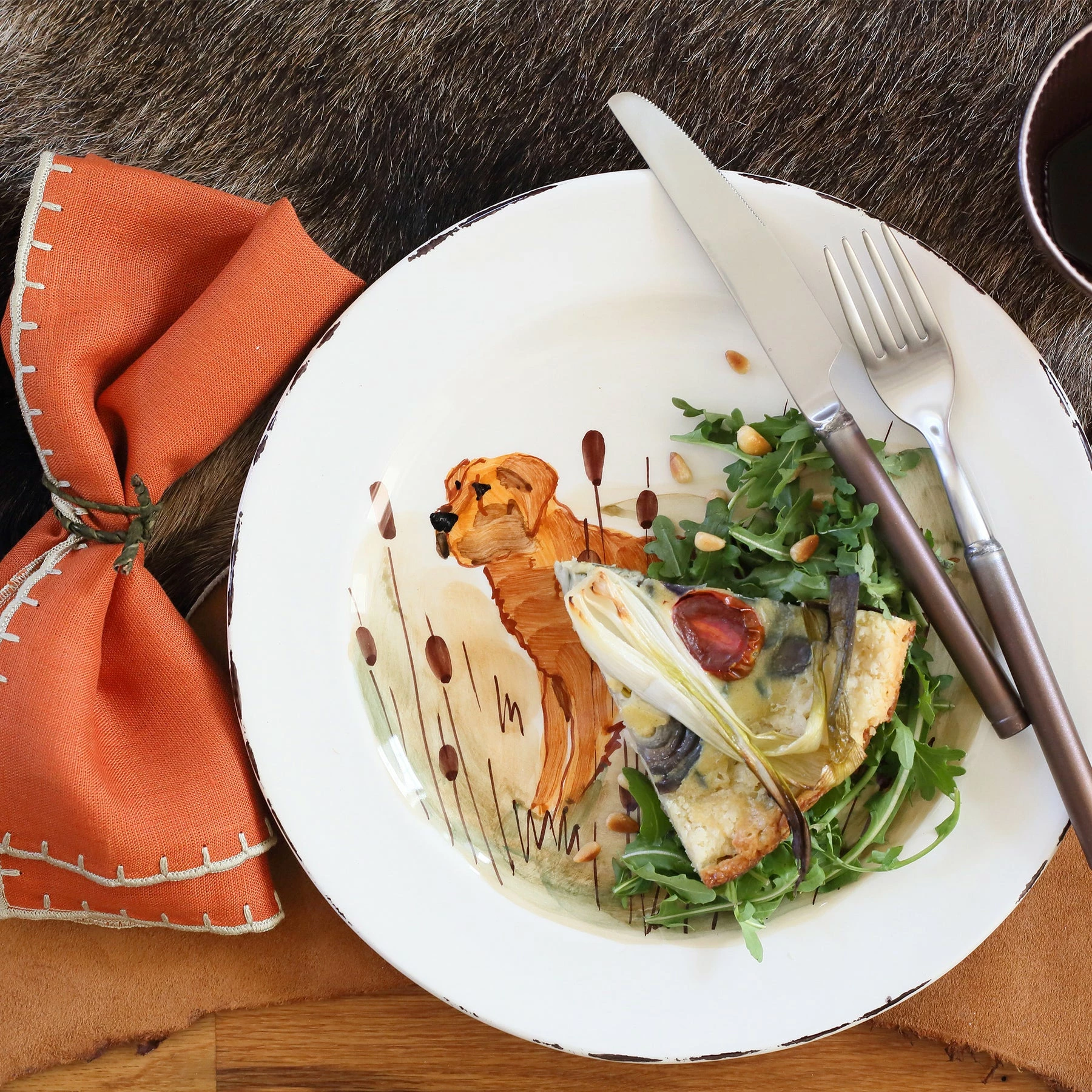 Handpainted in Tuscany and an instant classic for everyday dining, the Wildlife Hunting Dog Dinner Plate brings the grandeur and beauty of the outdoors to your table with exceptional detail and craftsmanship.