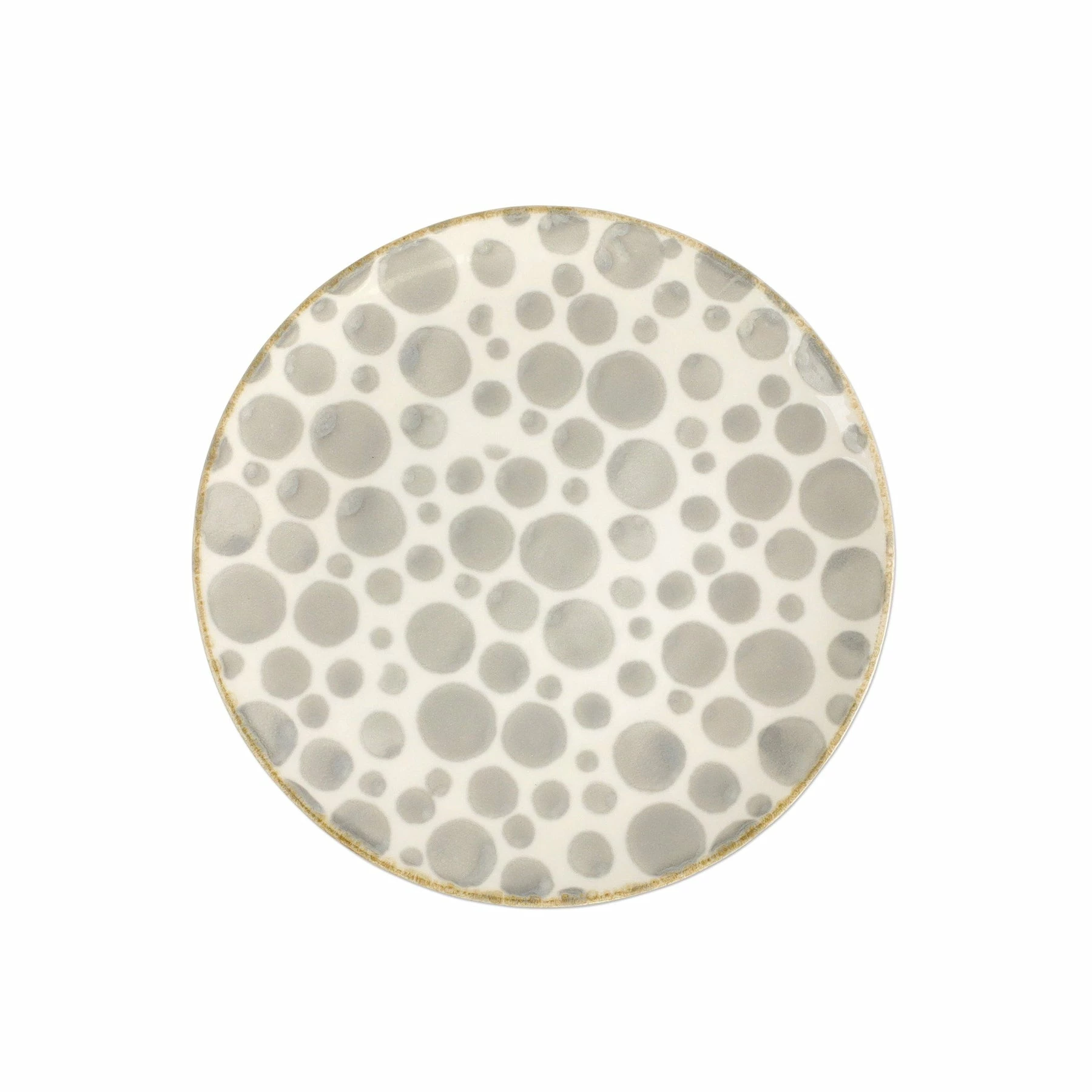 The Earth Bubble 3-piece Place Setting combines mid-century neutral tones with an simple silhouette in a playful handpainted pattern.