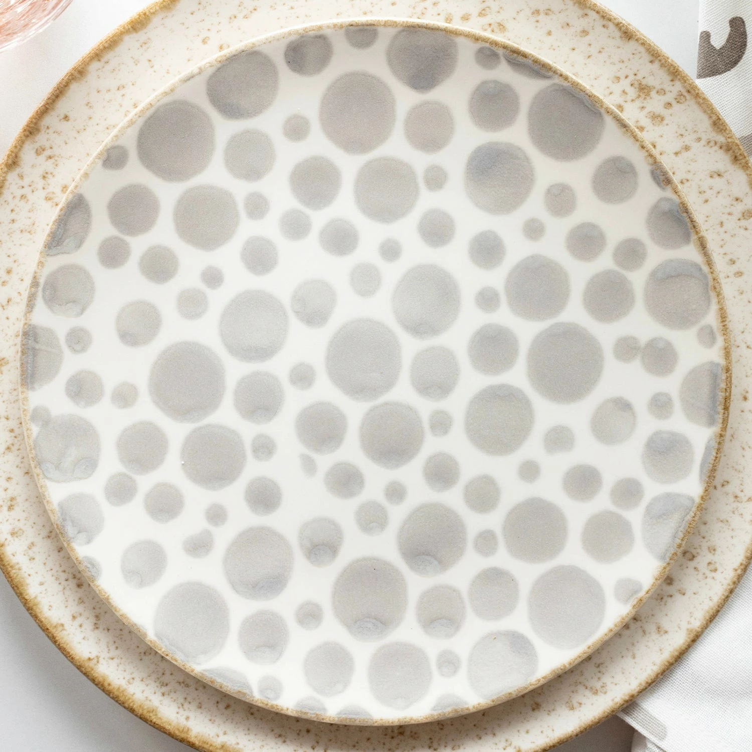 The Earth Bubble Salad Plate combines mid-century neutral tones with an simple silhouette in a playful handpainted pattern.