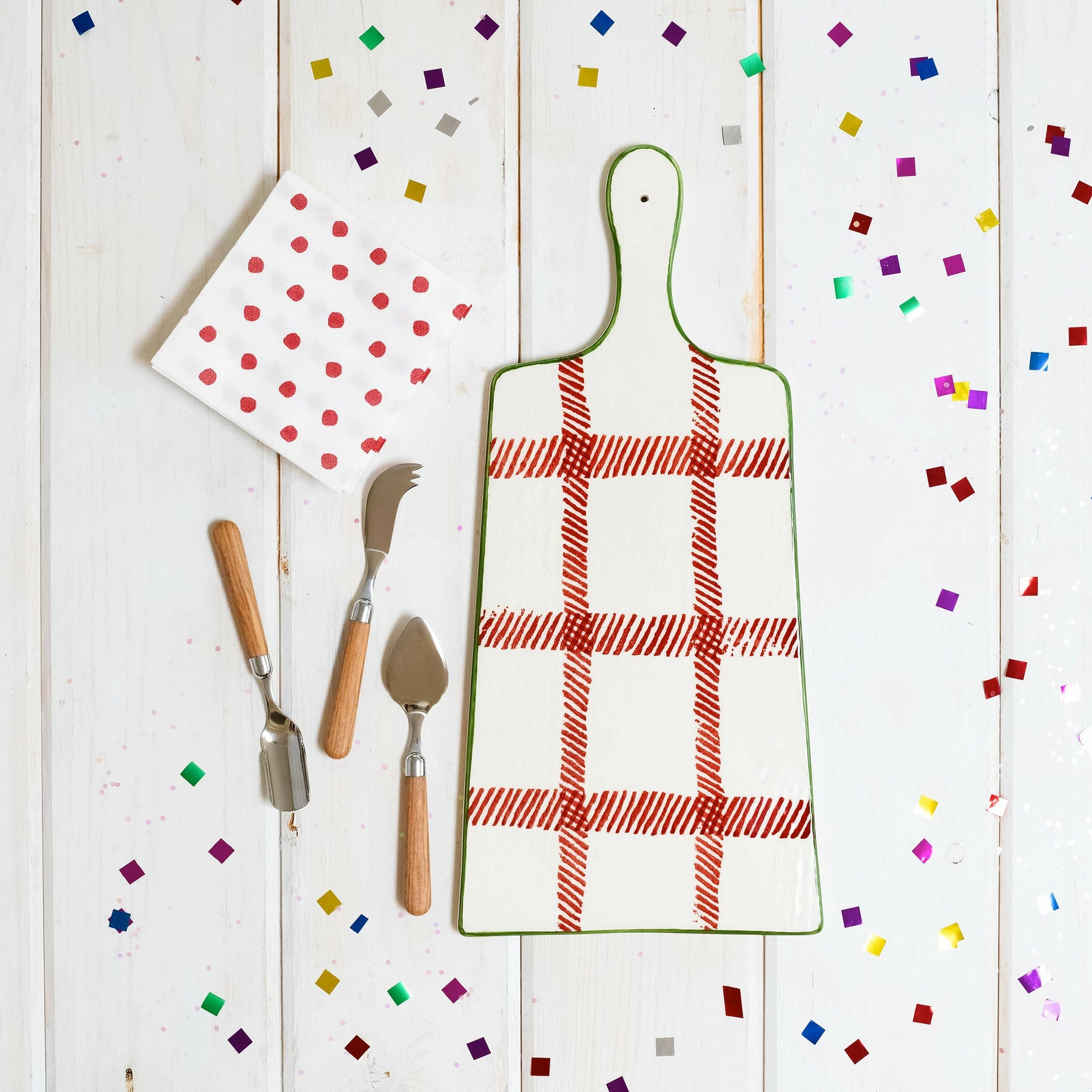 Festive and playful, the Mistletoe Plaid Cheese Board is intended for the everyday entertainer, especially during the hustle and bustle of the holiday season. Become the hostess with the mostess or the go-to gifter with this festive pattern.