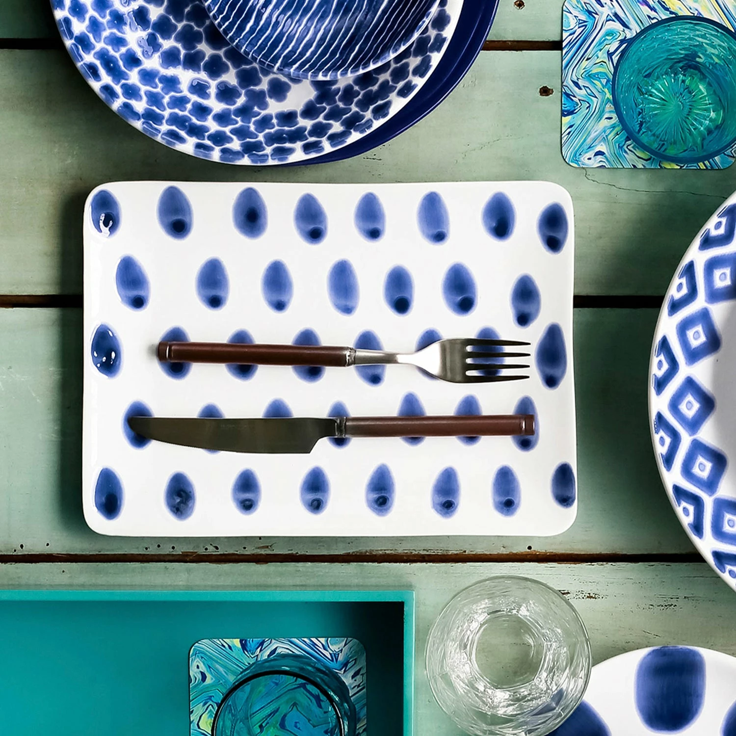 Frame your meal on the playful, fun design of the Santorini Blue and White Rectangular Platter. Drawing inspiration from the native colors of the Greek Isles, Santorini will easily become an everyday favorite in your kitchen.