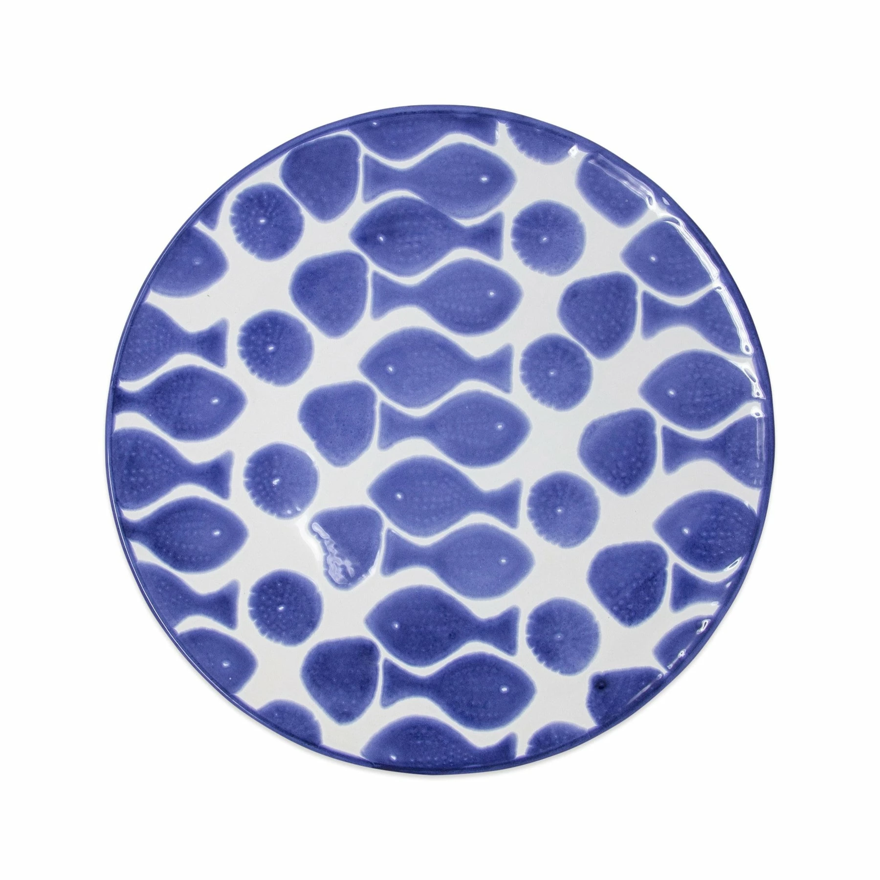 Make everyday entertaining a splash with the playful design of the Santorini Fish Dinner Plate, a perfect mix of blue and white that easily layers with the mosaic patterns of Santorini.