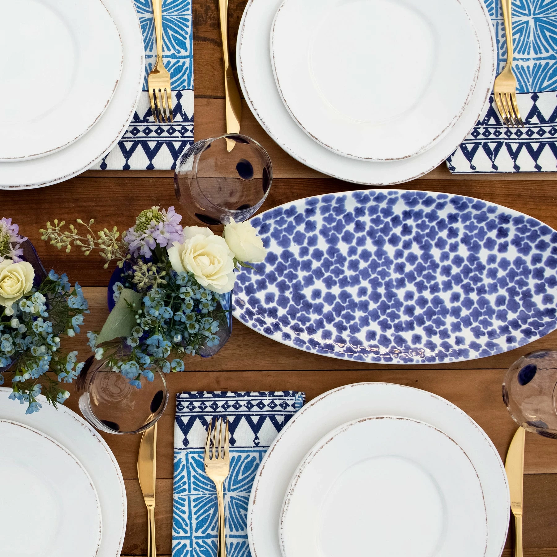 Viva By VIETRI Santorini Flower Narrow Oval Platter