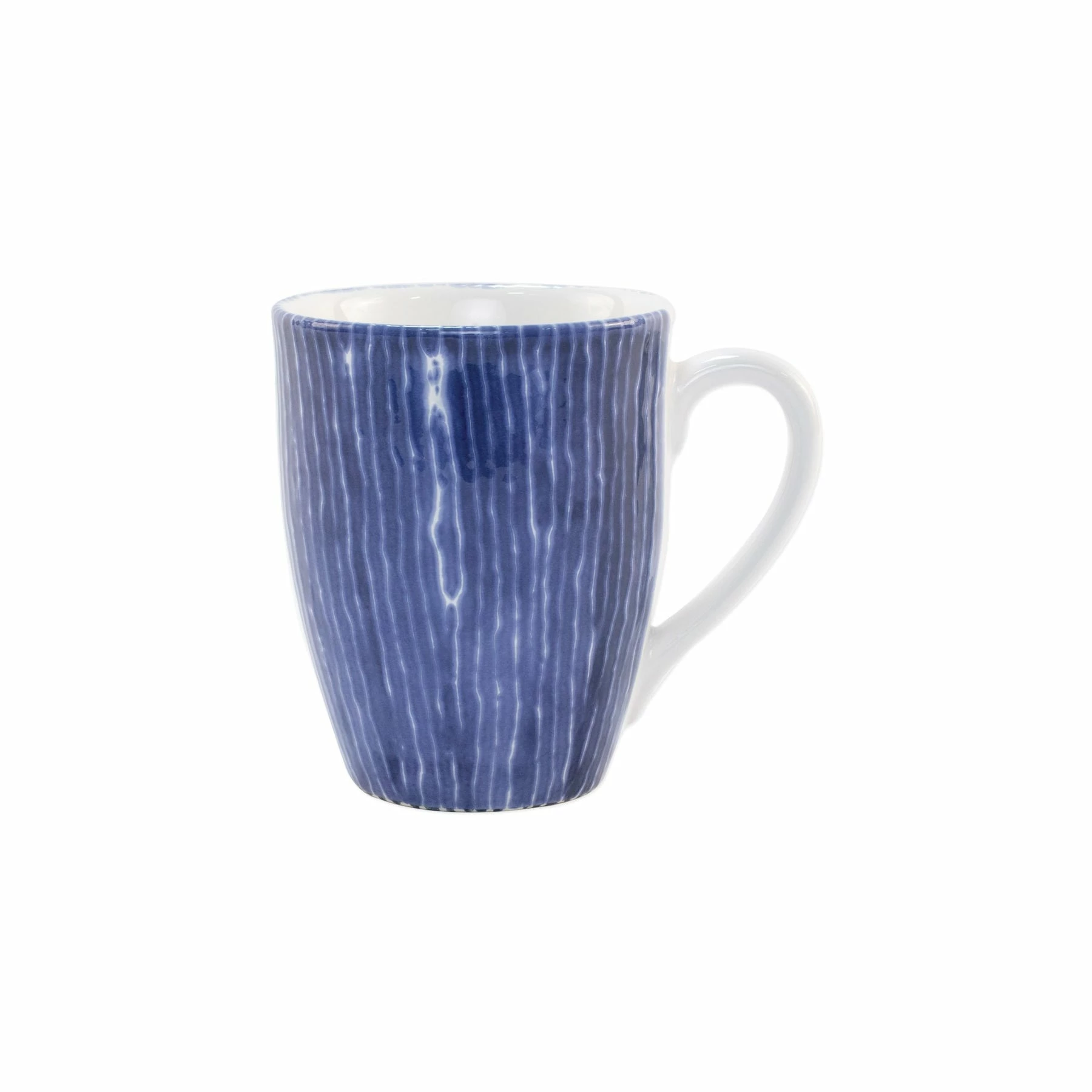 Recreate the beautiful mosaic tiles found in the Greek Isles with the Santorini Stripe Mug, painted on hard ceramic in a fun blue and white pattern.